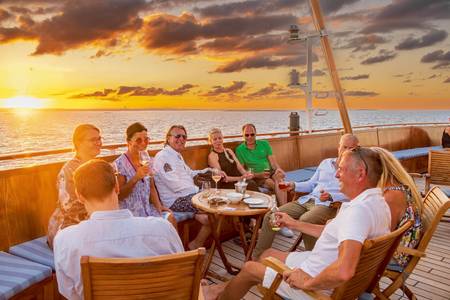 Auf den drei Seetagen zwischen den Azoren und Lissabon genießen Sie die Ruhe und Weite des Atlantiks. Die SEA CLOUD SPIRIT gleitet sanft über das Meer, die Segel im Wind, und lädt ein, den Alltag hinter sich zu lassen. An Deck können Sie die frische Meeresluft spüren, auf dem Sonnendeck entspannen oder im Spa neue Energie tanken. Der Tag folgt einem entspannten Rhythmus: Frühstück mit Panoramablick, Zeit für Spaziergänge auf dem Deck, ein gutes Buch in der Bibliothek oder leichte Gespräche in der Lounge. Zwischendurch verwöhnt Sie die Küche mit frischen, leichten Gerichten. Am Abend taucht die untergehende Sonne das Schiff in warmes Licht, während festliche Dinner für genussvolle Momente sorgen. Mit jedem Tag wächst die Vorfreude auf Lissabon: die Ruhe auf See, das sanfte Schaukeln des Schiffes und die offenen Horizonte schaffen ein Gefühl von Freiheit und Erholung, das lange nachklingt.
