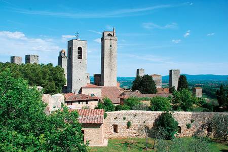 Besuchen Sie den Trasimeno See, bevor Sie wieder gegen Norden in Richtung San Gimignano zu Ihrer letzten Übernachtung fahren. Von den drei Inseln ist nur Isola Maggiore auch kontinuierlich bewohnt. Man kann sie gut mit Ausflugsbooten von mehreren Orten aus erreichen und sie auf einem der vielen Spazierwege erkunden. Fahren Sie über Cortona und Arezzo, oder über Gaiole, Radda und Castellina im Chianti zurück für die letzte Übernachtung in Colle Val d'Elsa.
